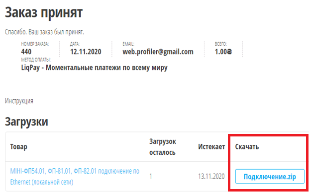 6.1. Доставка товаров, приобретенных в Интернет-магазине, осуществляется через личный кабинет покупателя, на вкладке «Загрузки» по кнопке «Скачать».